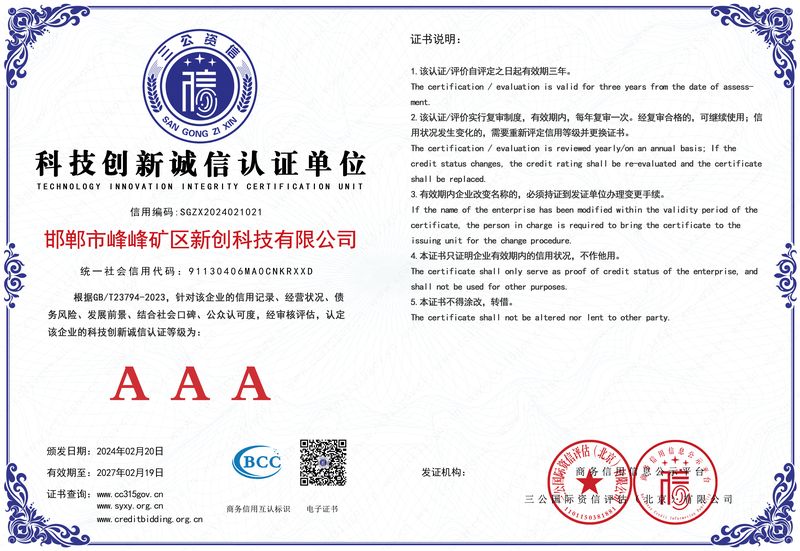地址:河北省邯鄲市峰峰礦區(qū)經濟開發(fā)區(qū)新裝備產業(yè)園A區(qū)
